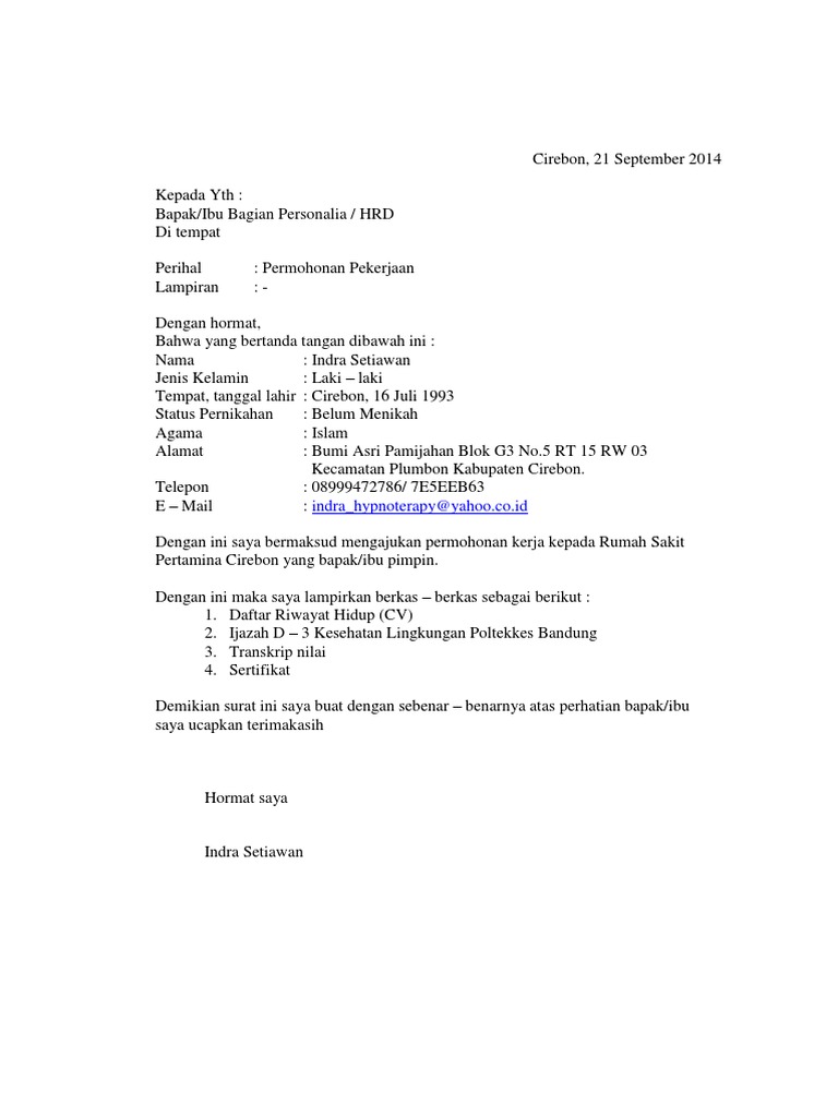 Kudus 22 april 2019. Dengan hormat sesuai dengan penawaran lowongan pekerjaan dari ptspbu pertamina untuk bagian admin seperti yang termuat dari harian serambi kudus pada tanggal 28 april 2019 maka saya yang bertanda tangan dibawah ini. Biasanya terlebih dahulu pihak sekolah atau kampus membuatkan surat permohonan magang kepada pihak perusahaan. Contoh surat lamaran kerja ke pertamina dalam bahasa inggris have an image from the othercontoh surat lamaran kerja ke pertamina dalam bahasa inggris it also will include a picture of a kind that could be seen in the gallery of contoh surat lamaran kerja ke pertamina dalam bahasa inggris. Bapakibu manager personalia ptspbu pertamina. Kemungkinan jenis surat permohonan yang akan kamu buat atau kamu urus berbeda tapi tidak usah bingung kamu cukup menyesuaikannya dengan contoh yang kami berikan di atas.