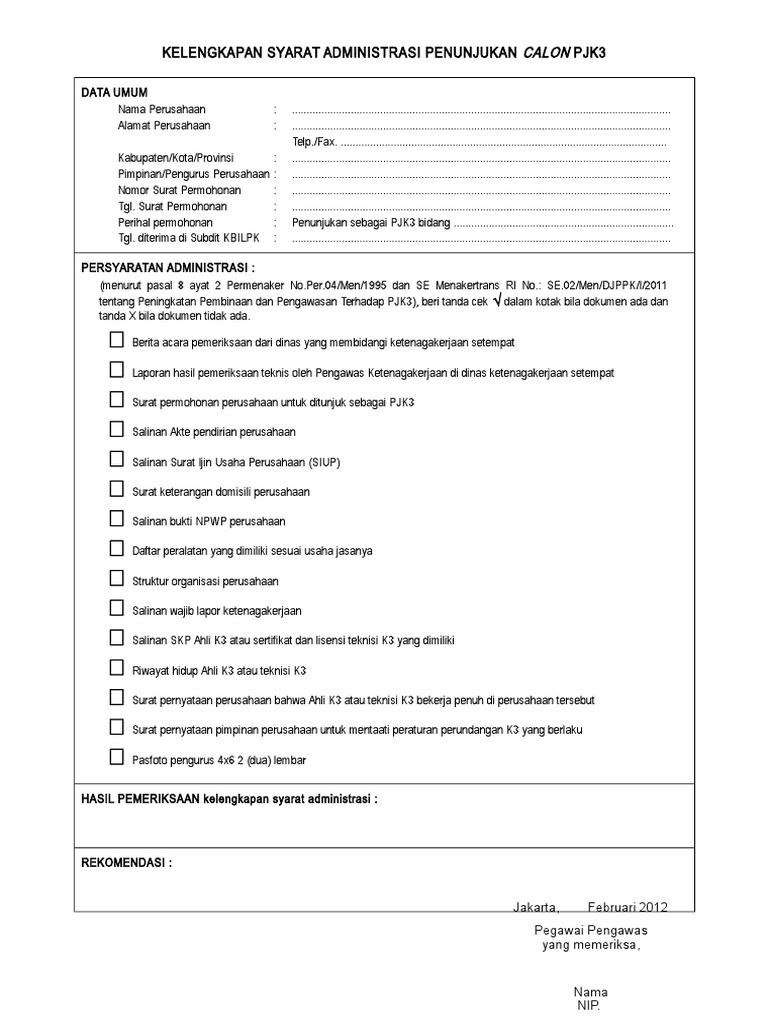 Peraturan menteri tenaga kerja ri no. Berikut ini contoh surat permohonan pencabutan pkp jika dilihat bagian bagian dalam suat permohonan pencabutan pkp terdiri dari. Contoh surat pengajuan tim p2k3 perusahaan dengan hormat sehubungan dengan penerapan sistem manajemen keselamatan dan kesehatan kerja smk3 sesuai peraturan pemerintah ri no 50 tahun 2012 dan menindaklanjuti undang undang no 1 tahun 1970 dan permanker no per 04men1987 maka bersama ini kami mangajukan permohonan pengesahan panitia pembina keselamatan dan kesehatan kerja p2k3 di perusahaan. Ayat 1 pjk3 harus mengajukan surat permohonan perpanjangan dengan melampirkan syarat syarat sebagaimana dimaksud dalam pasal 8 ayat 2 dan daftar kegiatan selama berlakunya keputusan penunjukan. Kop surat pemohon khusus perusahaan pemilik objek yang belum memiliki atau belum menunjuk pjk3 surat permohonan riksa uji surat keterangan k3 instalasi penaggulanagan kebakaran. 15 contoh surat dinas resmi pemerintahan perusahaan organisasi dll paling lengkap tidak bisa dipungkiri kalau penggunaan surat belakangan ini memang sudah semakin jarang.