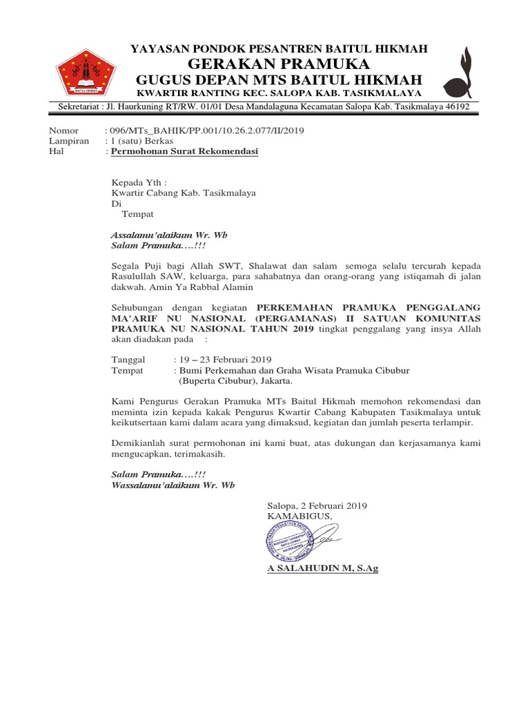 Hay sobat bob anda dapat menemukan contoh surat permohonan pada bagaian akhir artikel ini. Fakta ini biasanya diisi dengan data sesuai permintaan dari orang yang meminta surat rekomendasi tersebut. 01 pmr smk kes bnp xii 2018. Contoh surat permohonan izin seperti surat surat lainnya yang memiliki beragam jenis di sebabkan oleh tujuan pembuatan dan fungsi surat yang berbeda yang sebelumnya sudah di bahas di blog ini seperti surat permohonan bantuanpada kesempatan kali ini kami akan mencoba menulis surat permohonan izin yang pada intinya tujuan yang di miliki adalah sama yaitu isinya tentang pengajuan permohonan. 15 contoh surat rekomendasi yang baik dan paling lengkap jika diartikan secara sederhana maka surat rekomendasi bisa diartikan sebagai surat yang dibuat oleh seorang pimpinan atau pejabat tertentu yang berisi keterangan tentang seseorang berdasarkan fakta fakta yang ada. Jalan di nuansa perkasa no.