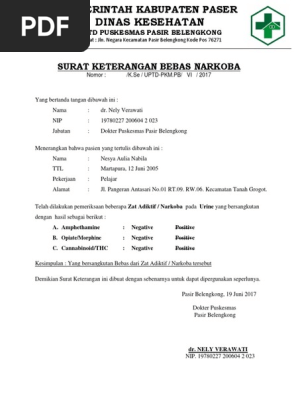 15 contoh surat keterangan bebas narkoba paling lengkap salah satu berkas pendukung yang bisa digunakan untuk melamar pekerjaan melanjutkan pendidikan atau kebutuhan lainnya adalah surat keterangan bebas narkoba.