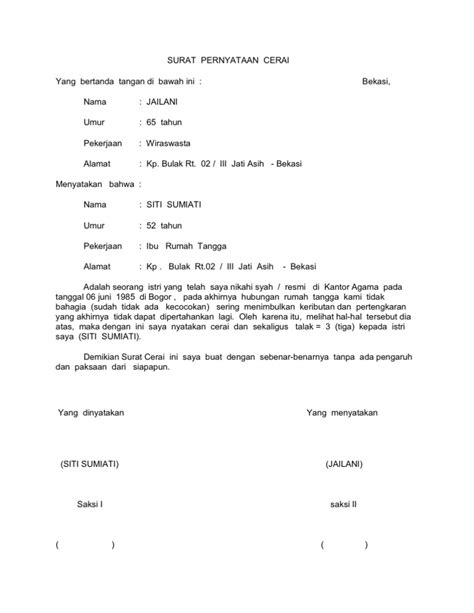 Contoh di bawah ini sebenarnya bukan mengandung makna untuk mendoakan aipapun untuk melakukan keputusan ini loh ya. The collection that comprising chosen picture and the best amongst others. 209srppviii2009 yang bertanda. Contoh surat permohonan izin cerai dari atasan. Terima kasih telah berkunjung ke blog barisan contoh 2019. Surat pernyataan ahli waris surat pernyataan cerai adalah surat pernyataan yang berisi.
