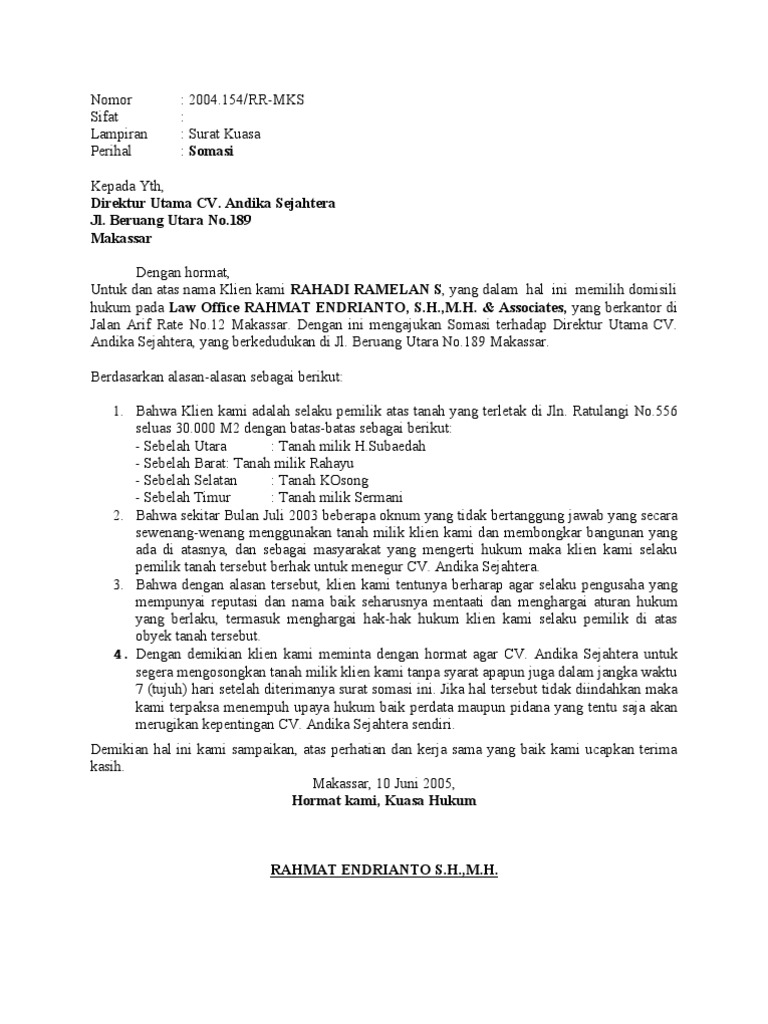Contoh surat somasi penipuan. Maka berdasarkan uraian tersebut diatas dengan ini kami atas nama klien kami mengirimkan surat somasi ini agar supaya saudari dapat memenuhi tanggung jawab untuk segera membayarkan uang tersebut sampai batas waktu 1 satu. Surat somasi sendiri merupakan surat teguran maupun peringatan yang diberikan kepada pihak tertentu yang dinyatakan melanggar hukum dan peraturan. Nah bila anda yang ingin membuatnya berikut ini kami bagikan beberapa contoh surat somasi yang bisa anda jadikan bahan referensirujukan. Contoh somasi surat peringatan. Contoh surat somasi admin padamu 21 september 2016 at 1039 0 terkadang dalam suatu perjanjian kerja sama dalam bisnis tidak terlaksana dengan semestinya dikarenakan adanya ingkar janji atau wanprestasi yaitu keadaan yang dikarenakan kelalaian atau kesalahan dari pihak yang mempunyai utangkewajiban debitur. Itu tadi penjelasan singkat mengenai contoh surat somasi yang dapat kami berikan pada kesempatan kali ini.