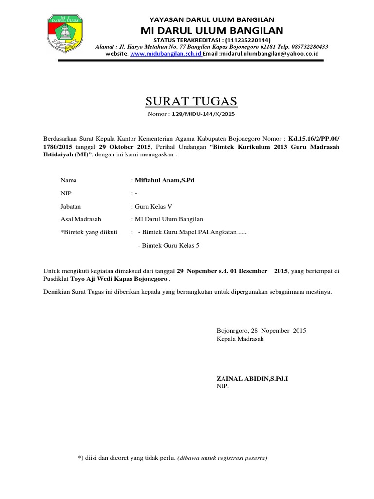 Surat Tugas Pengertian Contoh Guru Kolektif Organisasi