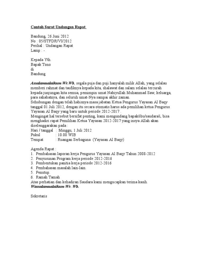 Contoh surat undangan meeting. Surat undangan dapat berupa surat resmi maupun tidak resmi. Nah surat resmi biasa digunakan untuk tujuan acara yang resmi sedangkan surat tidak resmi digunakan oleh perseorangan atau untuk kepentingan yang bersifat pribadi. Contoh surat undangan halal bihalal untuk pembicara yang baik dan benar. Contoh surat undangan rapat bagi anda yang berkecimpung dalam dunia organisasi pendidikan maupun yang bekerja di perusahaan pasti sudah tidak asing lagi dengan kegiatan rapat. 15 contoh surat undangan resmi pemerintahan perusahaan organisasi dll jenis surat ada dua macam yakni surat resmi dan surat tidak resmi. Contoh surat undangan kita tahu surat undangan adalah sebuah tulisan di dalam kertas yang memuat ajakan kepada orang lain baik perorangan maupun kelompok untuk menghadiri kegiatan tertentu.