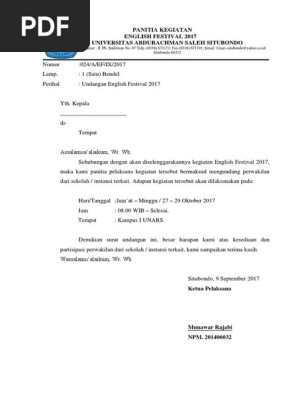 Surat tugas ini bisa diartikan sebagai surat yang dikeluarkan oleh instansi tertentu atau pihak yang lebih tinggi dan ditujukan kepada bawahannya untuk melaksanakan sebuah tugas. 15 contoh surat tugas resmi yang baik dan paling lengkap salah satu jenis surat yang sangat sering digunakan oleh perusahaan maupun instansi tertentu adalah surat tugas. Sebenarnya apapun produk atau jasa yang ditawarkan intinya adalah bagaimana orang atau perusahaan yang kita tawarkan tertarik dengan apa yang kita tawarkan. Contoh surat undangan pengajian dari beberapa contoh surat undangan resmi diatas mulai dari perusahaan sekolah pengajian sampai dengan mungkin anda mmebutuhkan surat undangan resmi dalam acara lain misalkan pentas seni syukuran undangan rapat sampai dengan undangan ulang tahun format penulisanya sama saja dan tinggal mengganti isi dan tujuan serta nama pengirim suratnya. Sedangkan contoh surat undangan tidak resmi adalah undangan ulang tahun pernikahan khitanan dan lain sebagainya. Contoh surat undangan kita tahu surat undangan adalah sebuah tulisan di dalam kertas yang memuat ajakan kepada orang lain baik perorangan maupun kelompok untuk menghadiri kegiatan tertentu.