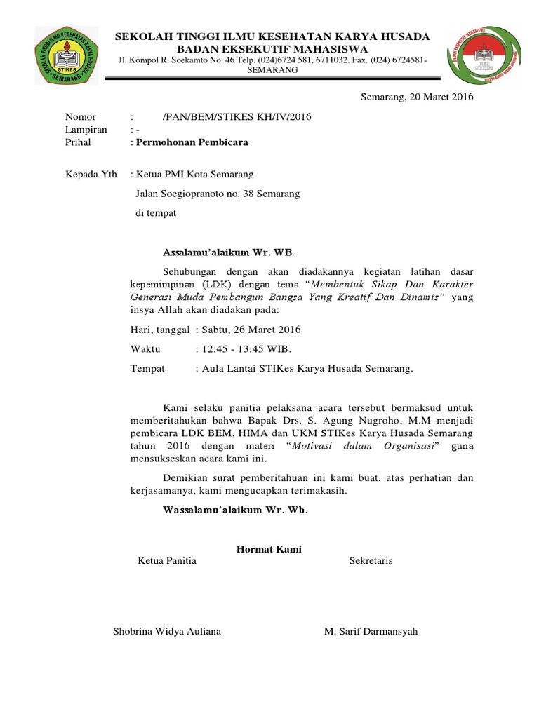 Klasifikasi kode surat dinas lengkap. Contoh permohonan surat pembicara seminar keynote nasional mahasiswa. Mohon maaf apabila terdapat kesamaan namatempatinformasi lain karena surat yang dibuat hanya bertujuan sebagai percontohan tanpa ada maksud apapun. Surat permohonan pembicara workshop berikut ini adalah subuah contoh surat permohonan surat undangan keynote untuk mengisi sebuah acara seminar nasional yang ditujukan kepada rektor. Contoh surat undangan seminar versi ms. Semoga bermanfaat untuk anda yang akan menulis permohonan audit internal.