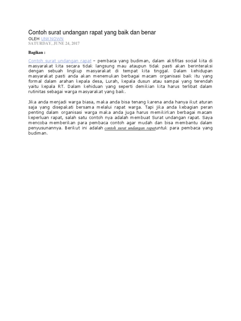Contoh surat undangan rapat anda tentu pernah menghadiri sebuah acara rapat entah rapat rt rapat karang taruna rapat acara kepanitiaan rapat dengan klien di perusahaan rapat direksi dan lain lain. 15 contoh surat undangan resmi pemerintahan perusahaan organisasi dll jenis surat ada dua macam yakni surat resmi dan surat tidak resmi. Dengan adanya rapat maka tiap anggota kelompok organisasi atau. Keduanya memiliki karakteristik yang berbeda dan digunakan untuk keperluan yang tidak sama.