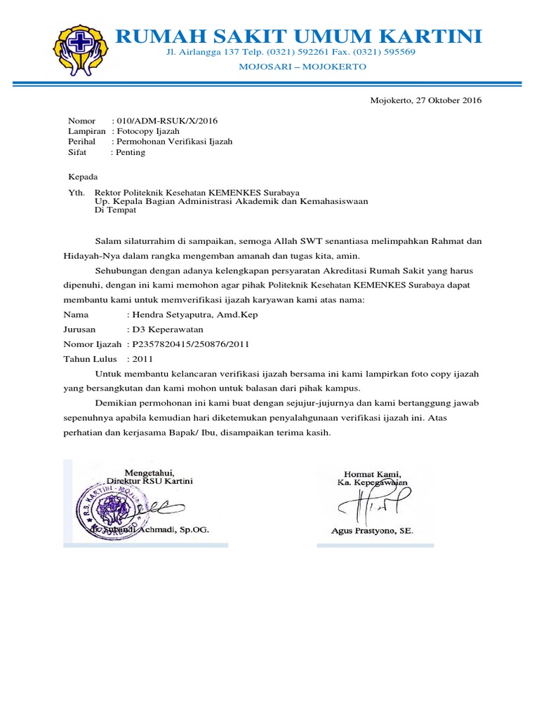 Itulah mengenai contoh surat permohonan verifikasi ijazah yang dapat digunakan untuk berbagai kepentingan yang umumnya dilakukan. Fb twitter wa line pinterest g linkedin. Contoh surat permohonan contoh surat permohonan magang contoh surat permohonan mutasi contoh surat permohonan kredit contoh surat permohonan maaf contoh surat permohonan pinjaman contoh surat permohonan referensi bank contoh surat permohonan cuti contoh surat permohonan ijin contoh surat permohonan bantuan contoh surat lamaran kerja contoh surat kuasa contoh surat resmi contoh. Iwan setya putra seakmm peluncuran sivil ini dimaksudkan sebagai kemudahan bagi pengguna lulusan dari stieken blitar untuk melakukan pengecekan keaslian ijazah lulusan stieken blitar. Excel download administrasi guru kelas versi digital tahun 2016 incoming search terms. Contoh surat permohonan verifikasi ijazah untuk melaar cpns.