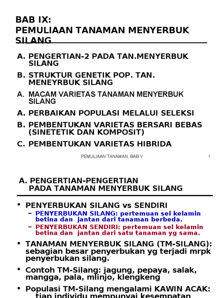 Penyerbukan Pada Tumbuhan Sendiri Tetangga Silang Bastar