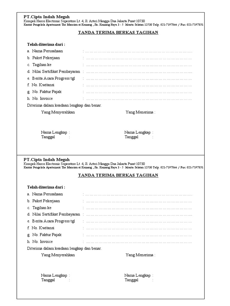 Dan untuk itu maka pihak menerima harus menerbitkan surat tanda terima untuk diberikan kepada pihak pemberi. Contoh format surat tanda terima uang dalam berbagai hal. Contoh tanda terima barang dan dokumen jika melakukan transaksi tentu ada yang namanya kegiatan serah terima bisa dari perusahaan kepada perusahaan lain atau juga dari perusahaan kepada pembeli. Ada banyak jenis surat yang masih dipertahankan sampai saat ini walaupun sudah banyak media komunikasi canggih. Izin usaha industri iui izin usaha perkebunan iup izin operasi io sertifikat laik operasi slo perorangan.