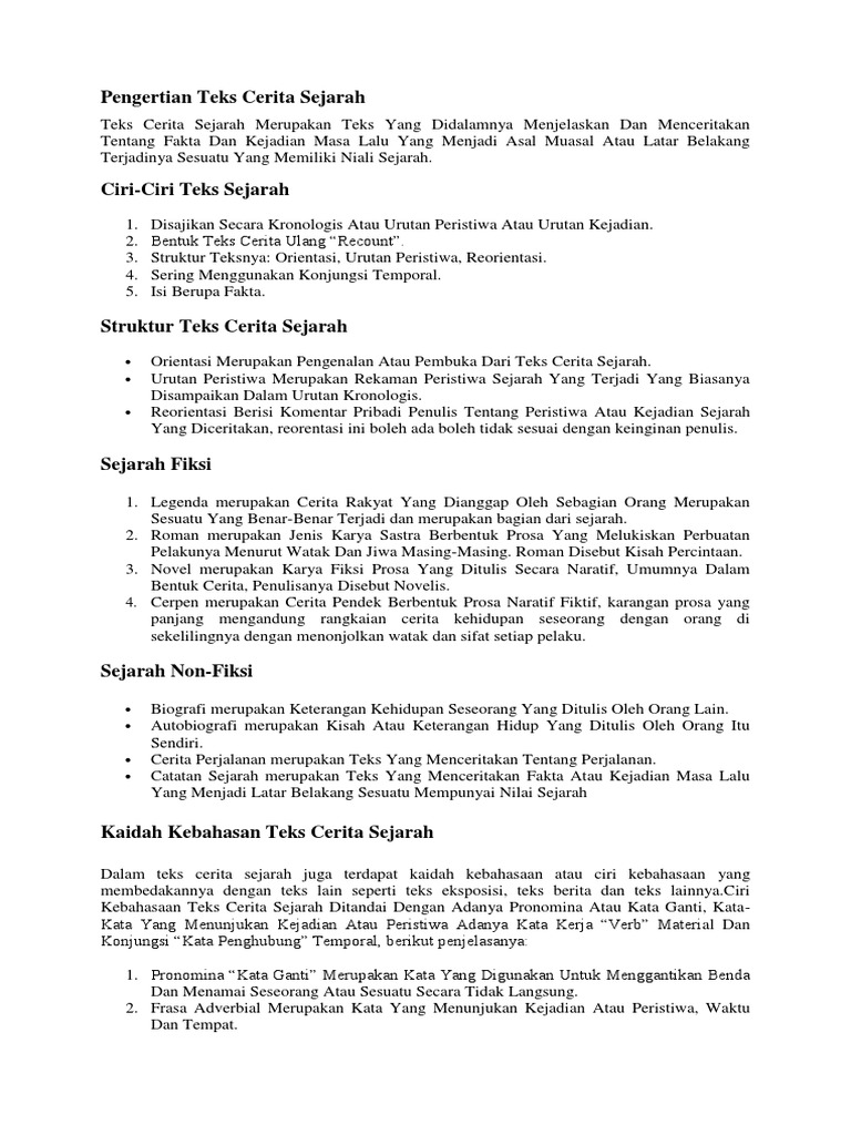 Teks Cerita Sejarah Pengertia Ciri Ciri Struktur