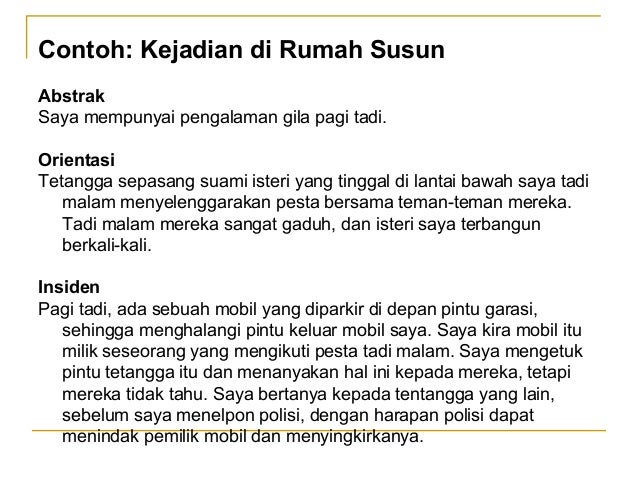 Teks ini termasuk jenis karya yang mengandung pengalaman hidup manusia. Waktu masih kuliah di jogja dulu aku tinggal di sebuah kos kosan. Pengertian struktur ciri ciri dan definisi teks eksemplum. Contoh dari teks eksemplum ini biasanya diawali dengan adanya pengenalan tokoh setelah itu barulah peristiwa yang dialami oleh tokoh kemudian akan ditutup dengan interpretasi yang timbul dari tokoh dalam cerita tersebut. Contoh teks eksemplum biasanya diawali dengan pengenalan tokoh kemudian peristiwa yang dialami oleh tokoh serta ditutup dengan interpretasi yang timbul dari tokoh tersebut. Teks ini juga termasuk dalam sastra yang berisi tentang pengalaman hidup seseorang.