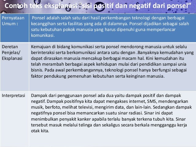 Contoh teks eksplanasi merupakan suatu teks yang membahas tentang mengapa dan bagaimana peristiwa terjadi. Contoh teks eksplanasi teks eksplanasi kini dipelajari oleh siswa baik di smp maupun sma. Strukturnya terdiri dari pernyataan umum urutan sebab akibat dan interpretasi seperti yang telah dijelaskan diatas tadi.