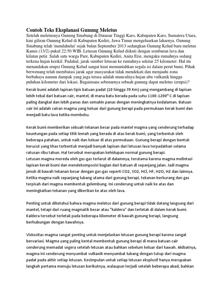 1 gunung meletus merupakan salah satu fenomena alam yang sering terjadi di indonesia. Contoh teks eksplanasi selamat datang di portal hidup simpel yah pada kesempatan kali ini kita akan membahas tentang contoh teks eksplanasi.