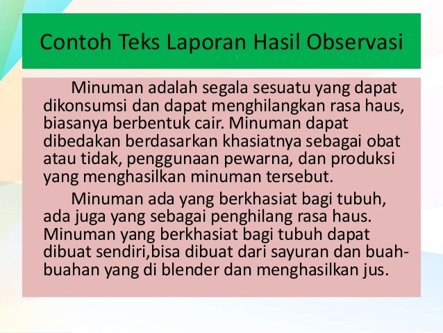 Contoh teks laporan hasil observasi tahukah kalian observasi merupakan sebuah penelitian yang salah satu teknik dalam pengumpulan datanya digunakan dalam suatu penelitian tertentu. Contoh teks laporan hasil observasi observasi dalam suatu penelitian yaitu salah satu teknik dalam pengumpulan data yang digunakan dalam suatu penelitian tertentu.