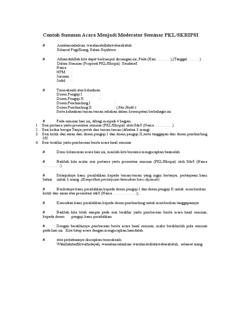 Yang pertama akan saya bacakan cv pembicara pertama yaitu ibu wiwi kustio p a. Contoh naskah moderator friday august 05 2016 contoh text moderator praktek menjadi seorang moderator sma stella duce 2 yogyakarta selamat siang dan salam sejahtera bagi kita semua. Workshop adalah pengertian ciri manfaat jenis contoh tata cara susunan untuk pembahasan kali ini kami akan mengulas mengenai workshop yang dimana dalam hal ini meliputi pengertian ciri manfaat jenis contoh tata cara dan susunan nah agar lebih dapat memahami dan dimengerti simak ulasan selengkapnya dibawah ini. Contoh yang saya barikan di atas hanya ilustrasi tapi hal itu minimal bisa jadikan acuan untuk membuat pembukaan yang lebih baik. Teks moderator assalamualaikum wrwb. Contoh teks moderator seminar dan workshop terima kasih kepada pembawa acara yang telah memberikan waktu kepada saya.