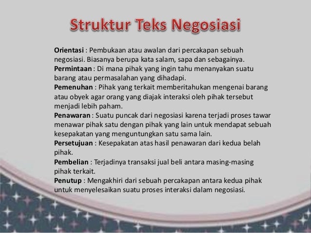 Contoh teks negosiasi dalam bentuk narasi jual beli di sekolah pemecahan konflik larangan formal untuk 2 orang 3 orang 4 orang 5 orang. Berikut ini contohnya. Contoh teks negosiasi. Kegiatan negosiasi tidak lepas dari kehidupan manusia sehari hari mulai dari negosiasi bisnis jual beli di sekolah lingkup masyarakat keluarga pengusaha dan pihak bank dan lainnya. Nah itulah 4 contoh teks negosiasi singkat dari keempat contoh teks negosiasi diatas ada yang bernegosiasi tentang jual beli sepeda bernegosiasi di lingkungan masyarakat tentang penggurusuran wilayah terus ada lagi negosiasi di lingkungan keluarga dan yang terakhir negosiasi di lingkungan sekolah ketua osis dan kepala sekolah. Nah disini yuksinauid akan memberikan contoh teks negosiasi dengan strukturnya.