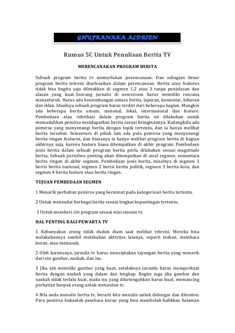 Rumus dalam menulis berita bagi seorang wartawan ataupun pembaca berita adalah 5 w 1 h. Contoh teks pembawa berita dan reporter berita terbaru by mughnifar ilham posted on march 16 2020 contoh pembawa berita mengenai berita orang yang menyiarkan suatu berita atau orang yang membawakan sebuah berita disebut dengan presenter.