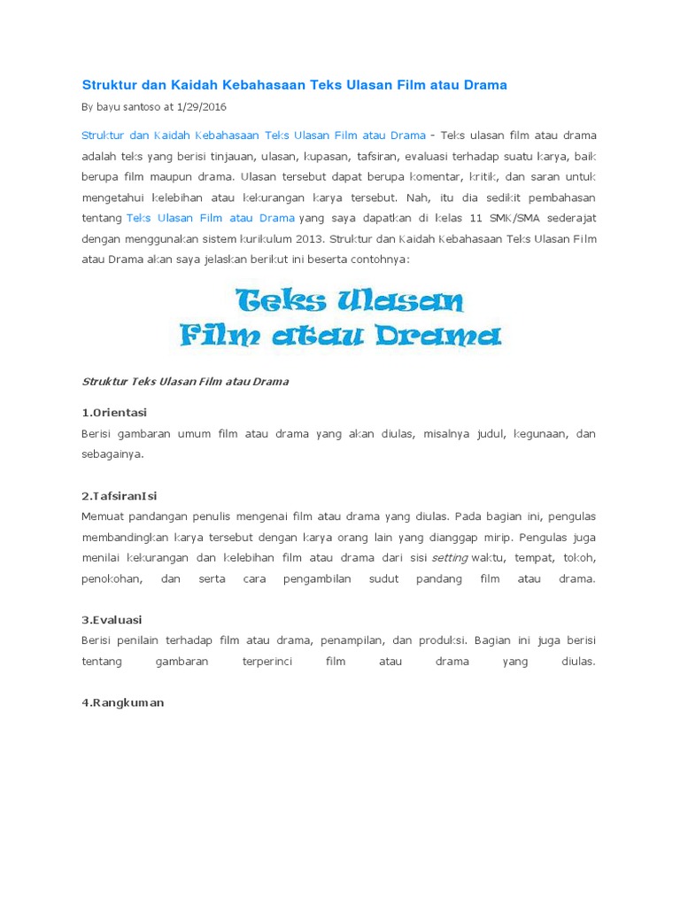 Kumpulan contoh teks ulasan cerpen singkat salah satunya bertema persahabatan teks ulasan film terbaru novel dan buku beserta strukturnya. Ody mulya hidayat sutradara. Next article next post. Bagian orientasi ini memuat mengenai pengenalan gambaran umum tentang sebuah karya yang akan diulas oleh penulis. Demikianlah artikel hari ini tentang 5 contoh teks ulasan film singkat beserta strukturnya. Fajar bustomi pidi baiq.
