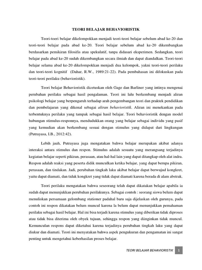 Menurut teori ini yang terpenting adalah masukan atau input yang berupa stimulus dan keluaran atau output yang berupa respons. Bab i pendahuluan a. Contoh kasus dalam teori behavioristik. Latar belakang jika menelaah literatur psikologi kita akan menemukan banyak teori belajar yang bersumber dari aliran aliran psikologi. Jono yang selama ini selalu rendah hati mulai merasa harus seperti teman temannya. Seperti halnya kelompok penganut psikologi modern skinner mengadakan pendekatan behavioristik untuk menerangkan tingkah laku.