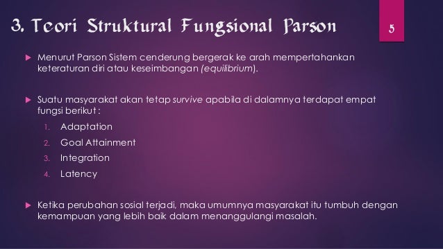 Contoh lainnya mengenai gambaran dalam teori struktural fungsional ini adalah lowongan kerja yang di dorong pemerintah sebagai cara mengatasi pengangguran dan solusinya di indonesia secara tidak langsung kondisi ini dilakukan dengan terus memberikan pelayanan pada investor yang membagun perusahaannya di indonesia. Teori fungsional menjadi karya talcott parsons dan robert merton di bawah pengaruh tokoh tokoh yang telah dibahas diatas. Teori struktural fungsional teori ini akan menganggap masyarakat sebagai sistem total yang menciptakan tatanan dan stabilitas sosial. Teori struktural fungsional berikut ini rangkuman makalah materi tentang pengertian teori struktural fungsional yang dibahas mulai dari pengertian jenis fungsi strukturunsur jurnal tujuan ciri makalah peran makna konsep kutipan contoh teori struktural fungsional secara lengkap.