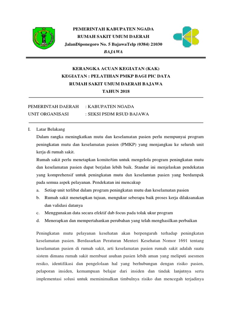 Demikianlah tor ini kami sampaikan dengan harapan bahwa kita dapat bekerjasama demi suksesnya acara ini. Badan pengembangan dan pemberdayaan sdm kesehatan program. Pelatihan dilaksanakan selama 3 tiga hari 19 21 oktober 2015. Kerangka acuan kegiatan term of reference. Kerangka acuan kegiatan term of reference pertemuan koordinasi pengelola penyelenggara diknakes diklat dan masyarakat kementerian negara lembaga. Teknis program ini berupa pembekalan khusus selama 1 bulan dengan cara melakukan pelatihan pelatihan tentang materi meteri pkd sebagai stimulan awal agar olah wacana calon peserta pkd lebih mendalam.
