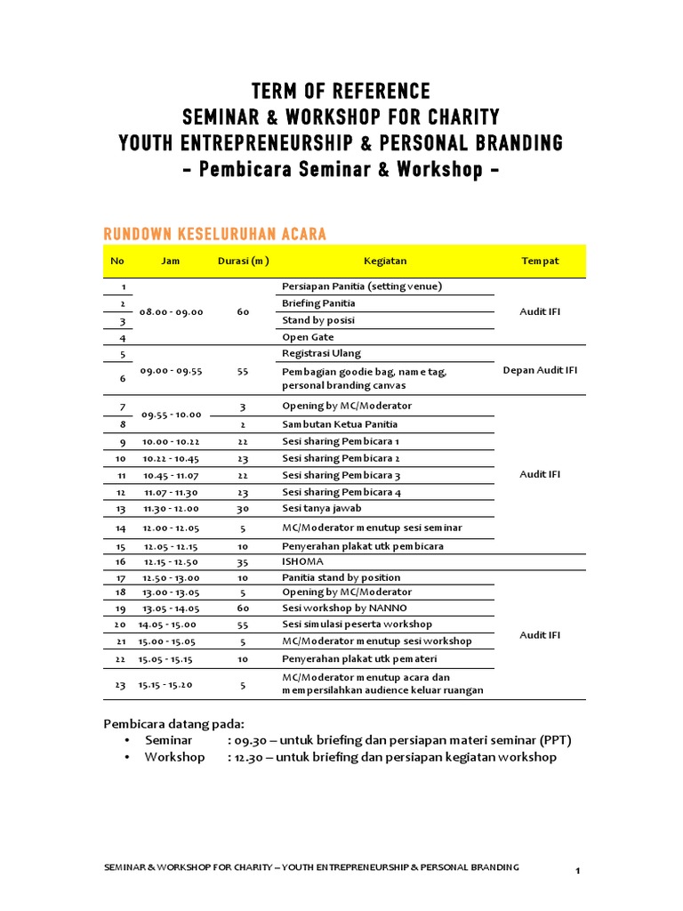 Apabila peserta menyerahkan formulirnya pada saat acara 28 juli 2017 maka biaya pendaftaran menjadi rp 500000 lima ratus ribu rupiah. Setelah saya membaca artikel milik anda saya mengucapkan banyak terima kasih karena bisa menambah pengetahuan kepada saya tentang cara pembuatan term of reference tor tentang kegiatan seminar nasional. Ada beberapa hal yang harus diperhatikan si penulis laporan dalam pembuatan laporan. Biaya kegiatan workshop sebesar rp 350000peserta. Joko riswanto st karimun 24 juni 2013 2. Term of reference tor seminar nasional pendidikan karakter dan call for papers ke 4 pembelajaran berkarakter berwawasan global a.