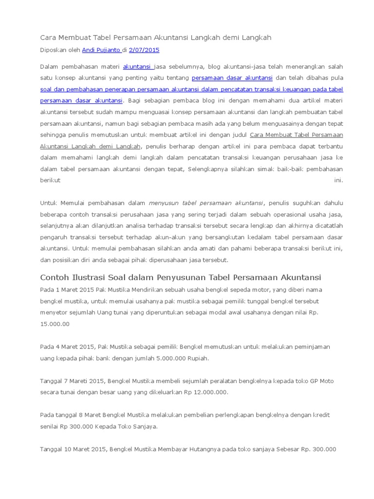 Contoh soal beserta jawaban akuntansi perusahaan jasa senin 13 juli 2015. Contoh transaksi perusahaan jasa bengkel. 12 contoh bukti transaksi perusahaan dan personal. Contoh transaksi jurnal umum tentunya anda sudah mengerti apa fungsi dari jurnal umum serta bentuk jurnal umum seperti apa. Baiklah sekarang kita akan masuk ke contoh soal. Soal transaksi april 2014 atas usaha bengkel pak budi bernama bengkel maju adalah sebagai berikut.
