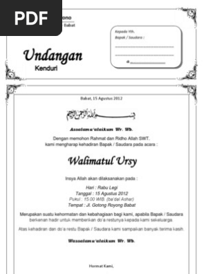 Undangan walimatul ursy siap edit. Undangan walimah walimatul ursy buat kamu yang butuh contoh atau kamu bisa gunakan file docnya word 2007 kamu edit lalu print.