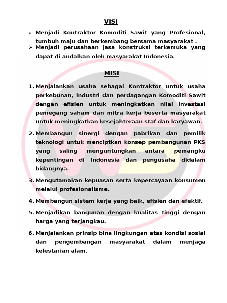 Contoh Beberapa Visi Dan Misi Perusahaan