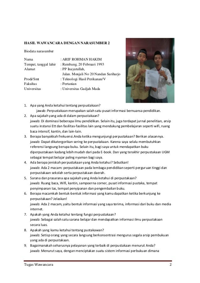 Contoh laporan hasil wawancara laporan hasil wawancara adalah sebuah teks tertulis yang melaporkan suatu wawancara yang telah dilakukan baik itu wawancara dengan pedagang pengusaha guru ketua rt. Tujuan dilakukan wawancara adalah untuk memperoleh informasi akurat dari narasumber yang terpercaya. Tujuan dari wawancara yaitu untuk mendapatkan informasi yang tepat dan aktual dari narasumber yang tepercaya. Berdasarkan informasi yang kami peroleh dari kbbi atau kamus besar bahasa indonesia pengertian dari wawancara adalah sebuah proses tanya jawab yang dilakukan oleh seseorang atau kelompok kepada seseorang yang disebut sebagai narasumber. Berikut ini adalah sejumlah pertanyaan dan contoh dalam wawancara yang singkat pertanyaan dan contoh ini dilakukan atas tanggapan pengunjung di salah satu wisata yang ada di kota yogjakarta.