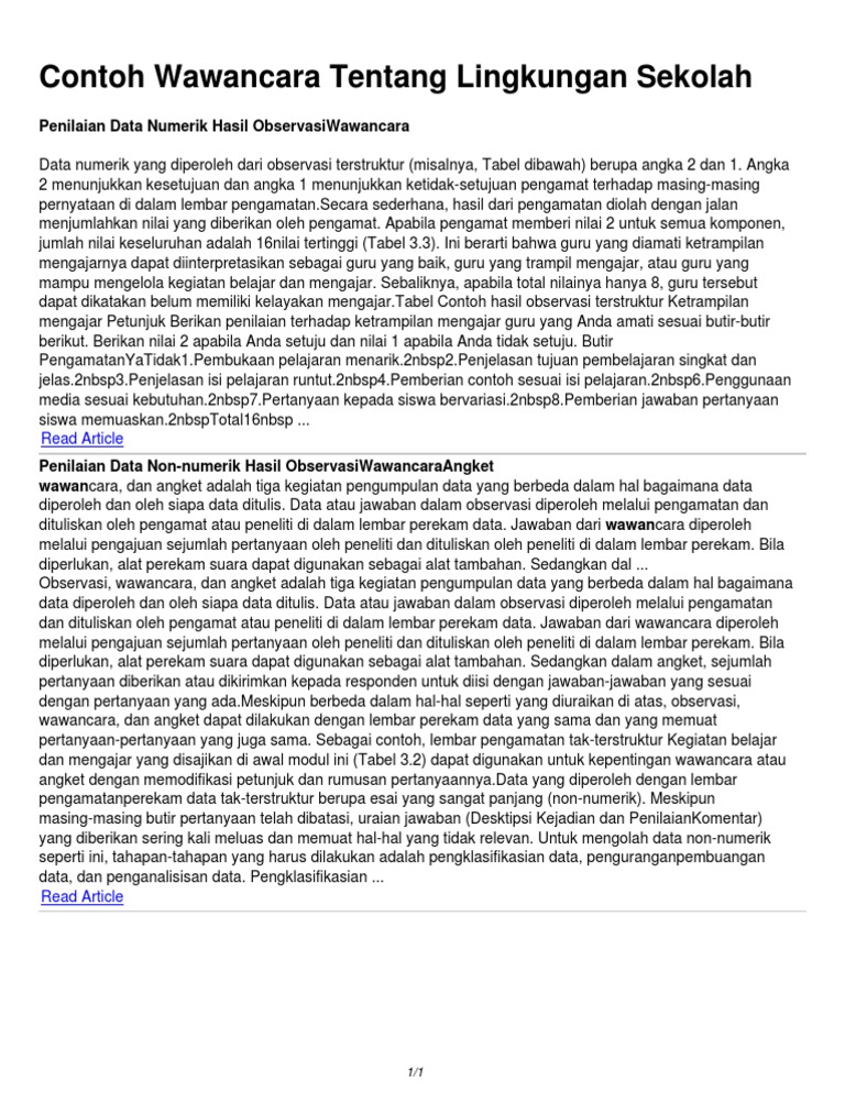 Contoh wawancara singkat tentang lingkungan. Membaca artikel bahasa inggris sangatlah penting bagi kita yang menguasai bahasa inggris. Pada kesempatan yang lalu kita telah mengulas tentang jenis jenis esai struktur esai yang baik cara membuat esai yang benar contoh esai singkat dan contoh esai sastrakali ini kita akan mengulas tentang contoh esai tentang lingkungan. Tidak semua siswa sadar akan kebersihan lingkungan dikarenakan masih ada siswa yang malas membersihkan lingkungan. Wawancara kelas 4 sd menyusun pertanyaan yang baik untuk wawancara. Contoh wawancara singkat tentang lingkungan. Bumi tak seindah dulu.