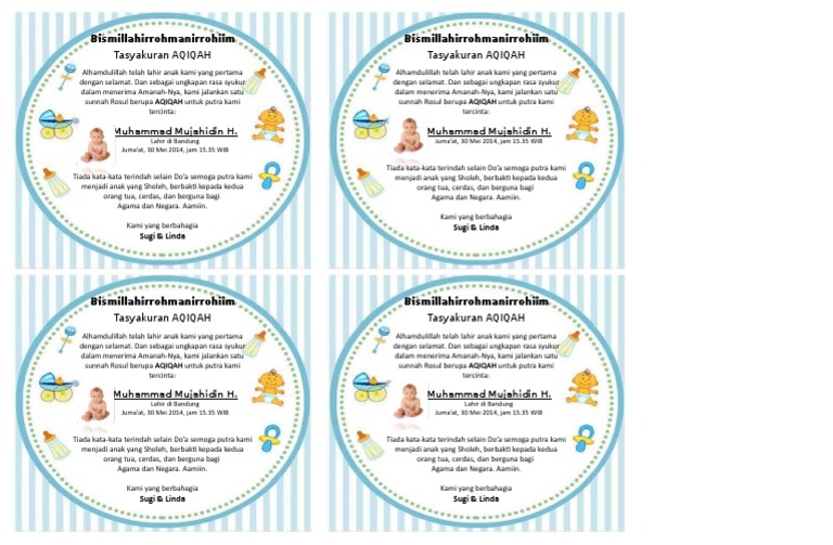 Template kartu ucapan aqiqah. Format penulisan syukuran kelahiran bayi. Download contoh kartu ucapan aqiqah cantik versi word pada berkat. Contoh kartu ucapan syukur atas kelahiran anakpada kesempatan kali ini saya akan memposting mengenai contoh template kartu brosur ucapan syukuran kelahiran yang saya buat dengan ms word untuk lebih mudah diedit dan banyak orang yang telah familiar dengan salah satu aplikasi pengolah kata ini. Undangan aqiqah doc undangan aqiqah pdf contoh undangan aqiqoh download kartu ucapan kelahiran bayi word. Hehe anda untuk membuatnya.