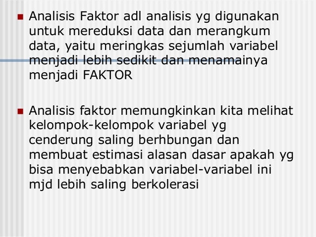 Berikut ini adalah download jurnal gratis yang merupakan kumpulan file dari berbagi sumber tentang jurnal metode analisis faktor yang bisa bapakibu gunakan dan diunduh secara gratis dengan menekan tombol download biru dibawah ini. Analisis faktor dipergunakan untuk mereduksi data atau meringkas dari variabel lama yang banyak diubah menjadi sedikit variabel baru yang disebut faktor dan masih memuat sebagian besar informasi yang terkandung dalam variabel asli supranto 2004 analisis faktor confirmatori cfa dikenal sebagai alat statistik yang berguna dalam menemukan bentuk. Salah satu hal yang membedakan contoh judul penelitian kualitatif dengan penelitian kuantitatif adalah penelitian kualitatif dimulai atau berangkat dari sebuah data dan kemudian menggunakan teori yang sudah ada yang berguna sebagai bahan untuk memperjelas dan nantinya akan berakhir dengan sebuah teori. Item2 prtanyaan yang pakai kepuasan atau kepentingan itu likert dan skala datanya masih ordinal jd setahu sy blum bisa pakai analisis faktor. Contoh analisis data analisis data merupakan salah satu jenis pekerjaan yang membutuhkan keahlian khusus. Jurnal metode analisis faktor.