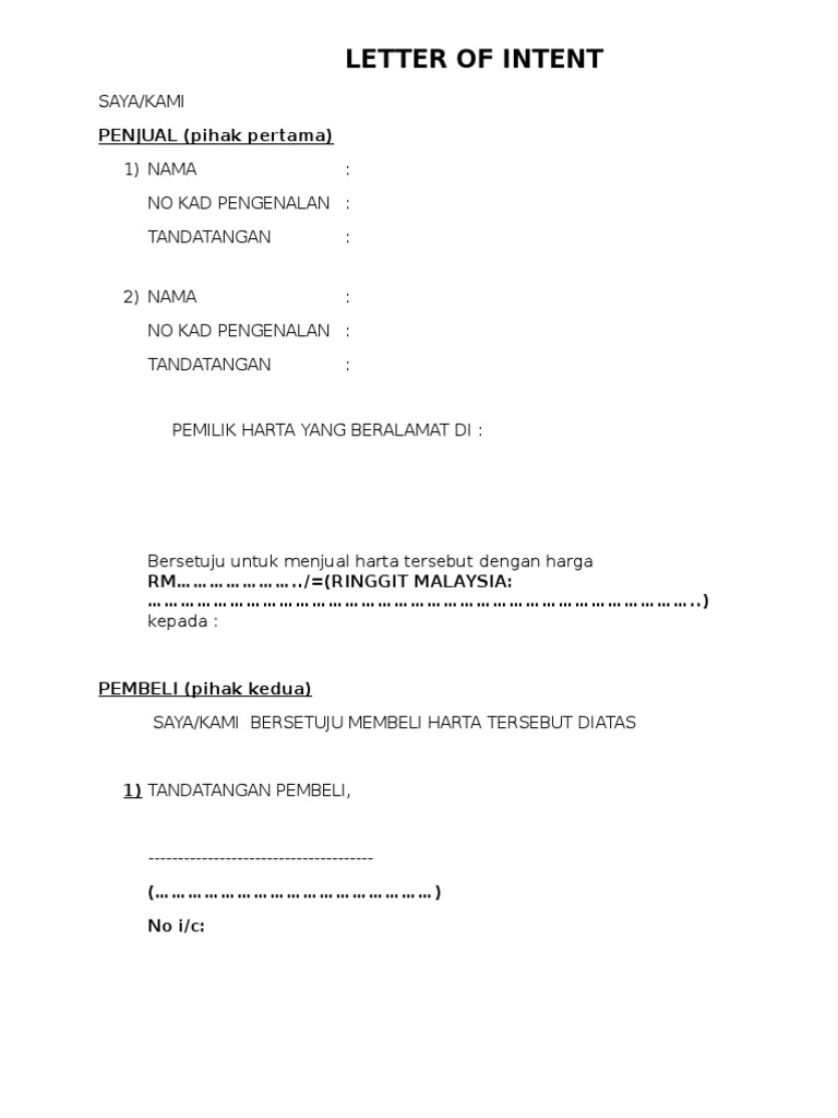 Follow the format to draft an effective letter of intent. Penerbitan surat minat atau lebih dikenal dengan letter of intent loi bertujuan untuk menunjukkan komitmen seseorang atau perusahaan tertarik atau berminat terhadap sesuatu hal dalam bisnis baik untuk membeli untuk ikut berpartisipasi dalam suatu bisnis atau keinginan apapun dari suatu entitas bisnis terhadap relasi bisnisnya. It basically acts as a letter of introduction and is used to express your intent or purpose for applying for the job scholarship internship etc. A letter of intent loi is a document declaring the preliminary commitment of one party to do business with another. Ada banyak alasan berbeda untuk menyediakan letter of intent loi. Jadi loi tidak hanya dipergunakan untuk menyatakan minat untuk.